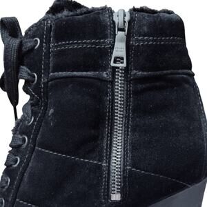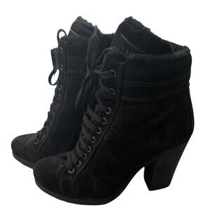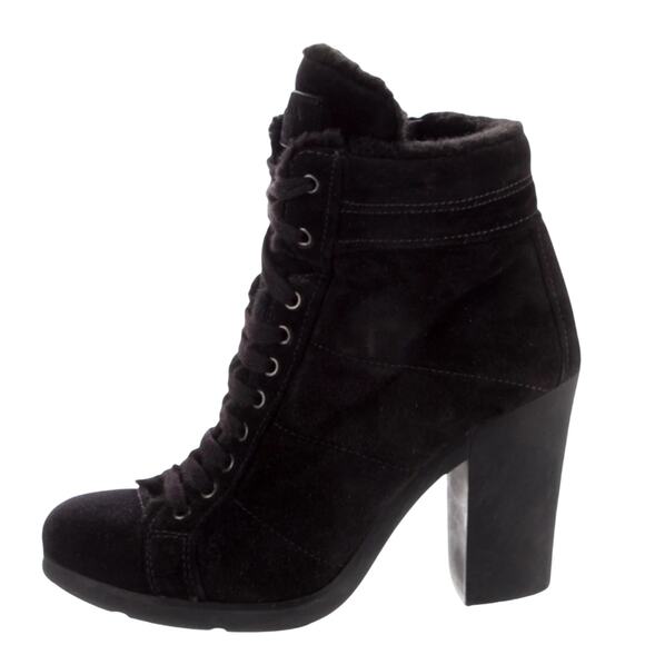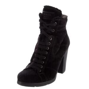 Prada Black Suede Fur Trim Lace-Up Boots.