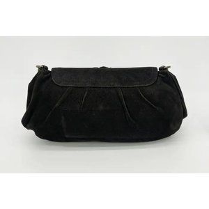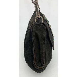 Prada Black Suede Rhinestone Alligator Flap Shoulder Bag