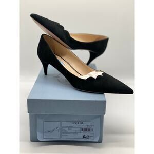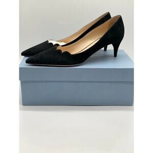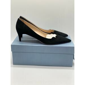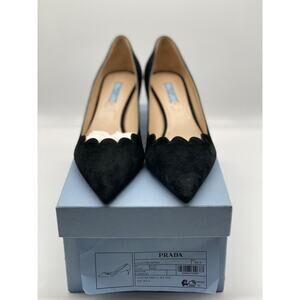 Prada Black Suede Scallop Pointed Pumps sz. 39.5 eu