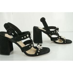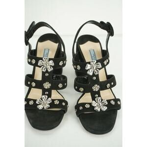 Prada Black Suede Silver Flower Studded Caged Strappy Sandals
