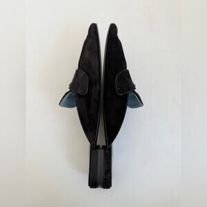Prada Black Suede leather logo slip on slide loafer mules EU 37