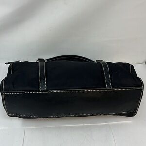 This is a great Prada Black Tessuto Nylon Cervo Leather Antic Easy Flap Shoulder Bag. Minor scuffs but overall excellent pre owned condition. Scuffs and scratches on chrome hardware. Very clean leather and nylon and interior. Full width back zipper pocket has some minor makeup scuffs on the interior. Otherwise no issues at all. Authenticity shank, tab and embossed hardware. Tongue and groove front closure, interior snap closures on both ends, interior expansion snaps as needed to be wider or narrower. No odors. No tears. 13” x 7” x 5” with 10.5” handles. Made in Italy. 100% authentic.