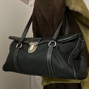 Prada Black Tessuto Nylon Cervo Leather Antic Easy Flap Shoulder Bag