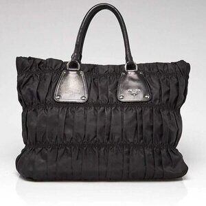 Prada Black Tessuto Nylon Gauffre Pleated Tote Bag