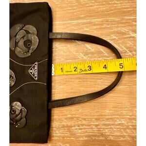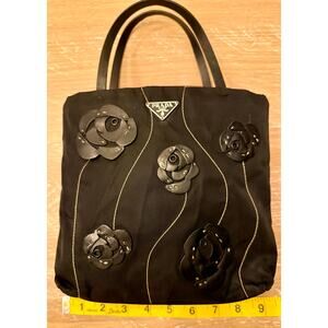 Prada Black Tessuto Nylon Shoulder Tote Bag Flower Applique Details Authentic