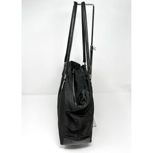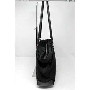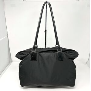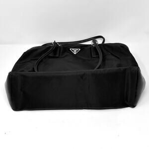 Keywords: Prada nylon tote bag, Prada 129 tag, black Prada tote, Prada leather strap bag, Prada triangle logo, Prada made in Italy, Prada everyday bag, designer work tote, Prada travel carryall, nylon zip top tote, pre-owned Prada, minimalist Prada bag, functional luxury