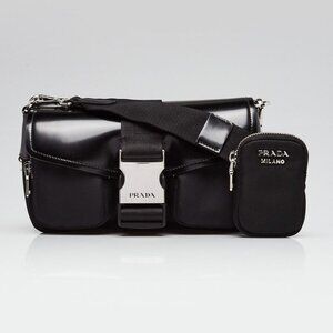 Prada Black Tessuto Nylon/Patent Leather Logo Buckle Crossbody Bag