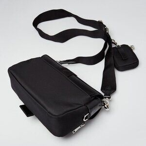 The exterior nylon is clean and beautiful throughout. The nylon strap is smooth. The hardware is bright and shiny with minor hairline scratches. The interior lining remains in pristine condition.