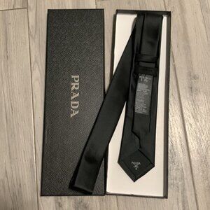 Elegant black tie by Prada. Sleek and sophisticated design. Perfect for formal occasions.