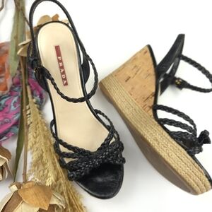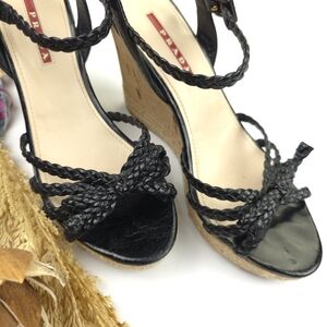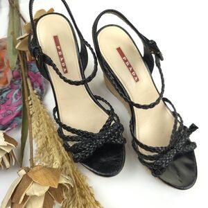 Prada Black Women's Platform Wedge Sandals Sz 37