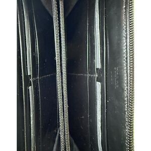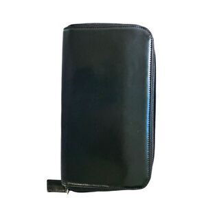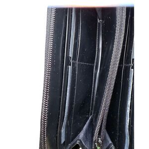 Details: Zip-around closure, multiple card slots, bill compartments, and zip coin pocket.