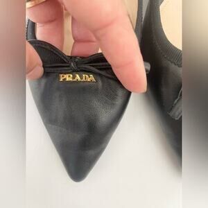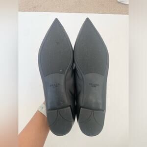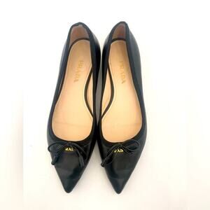 Prada Black leather pointed toe Logo embellished bow tie flats 38