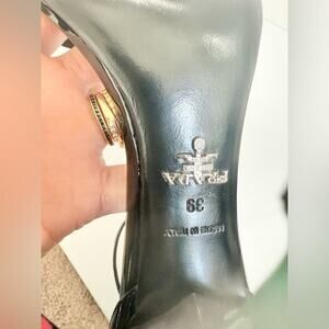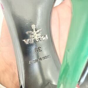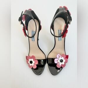 Prada Black red pink leather Runway Daisy floral high heel sandals EU 39