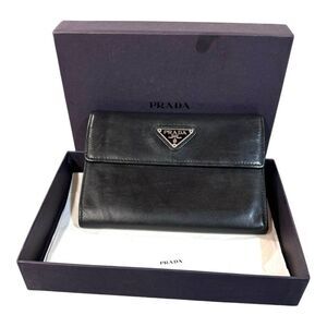 This Prada tri-fold wallet, crafted from high-quality leather, offers style and functionality. Featuring multiple card slots and a sleek design, it fits seamlessly into any sophisticated lifestyle, ensuring your essentials are organized and accessible.