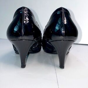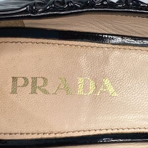 Prada Black Patent Leather Runched Ballet Pump Kitten Heel Size EU 37