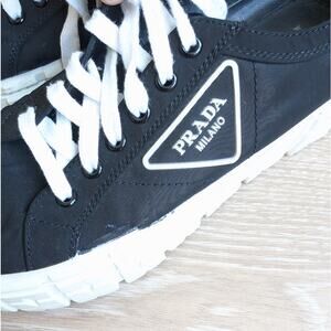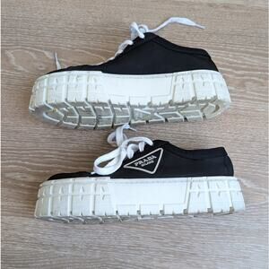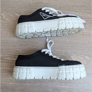 Prada Black/White Double Wheel Low Top Sneakers, size IT 37/US 7
