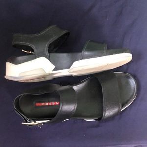 Prada Blk Open Toe Leather Sandal 39