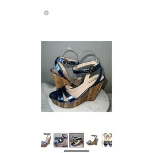 Prada Blue Metallic Leather Platform Wedge Sandal Size 7 or 37 EU