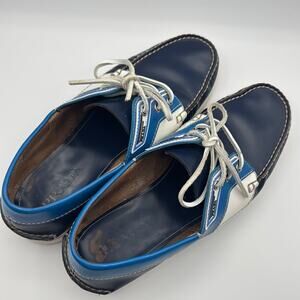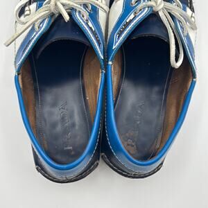 Gently Used Prada Lace Up Boat Shoes. These are missing a clear size indicator. There is a "10" next to a serial number, but trying them on they are definitely not a 10. I'm thinking they would fit well as an 11 Ask for measurements if you want to double check!