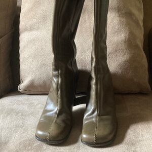 Prada Boots /Genuine Leather/ Khaki Green /Size 11 B width and 3.5 Inch Heal