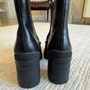 Prada Boots Lug Sole Platform Heels Black Size 41 EU