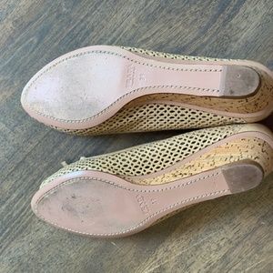 Prada Bow Peep Toe Cork Wedges