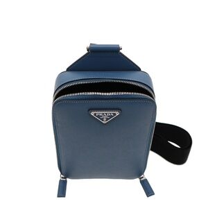 Prada Brique Travel Sling Bag Blue Saffiano Leather 2VZ106 New