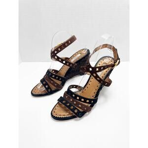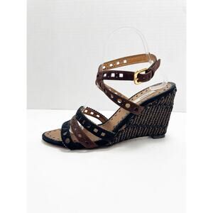 Prada Brown & Black Cutout Leather Woven Wedge Sandals Size 40
