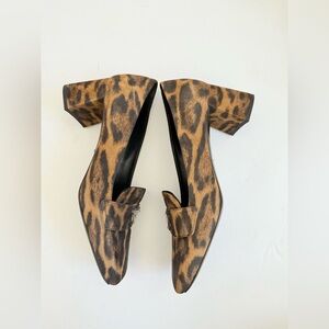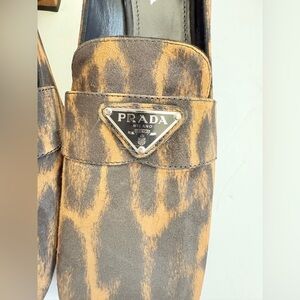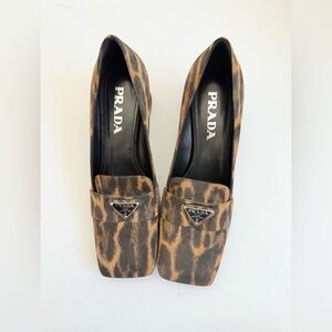 Prada Brown & Black leather Leopard Print Square-Toe Loafer pumps EU 37