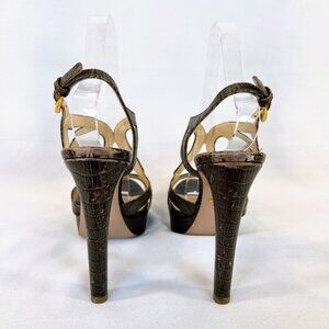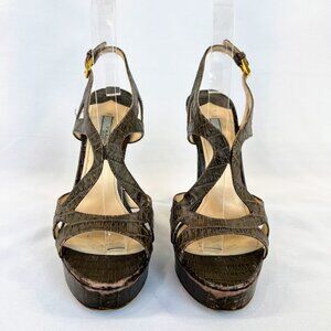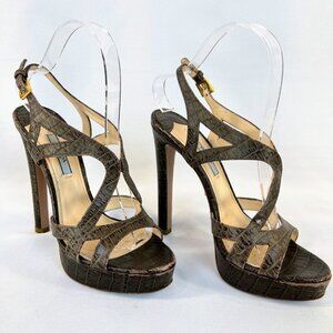Prada Brown Embossed Leather Cut Out Platform Sandals $581