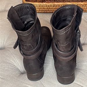 Prada Brown Leather Distressed Short Boots with Buckles Size 38.5