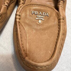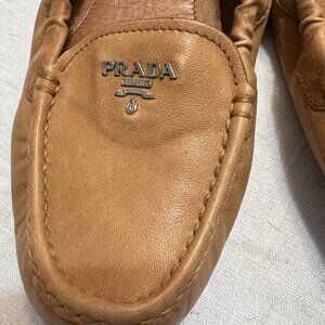 Prada Brown Leather Driving Loafers Size 39.5 EU 9 US Italy Designer Flats Shoes