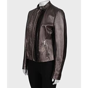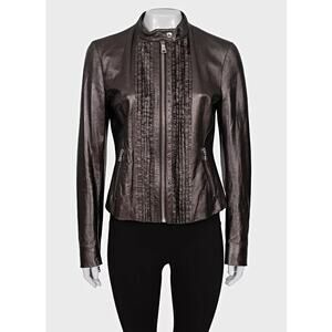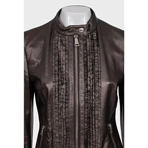 Prada Brown Leather Ruffle Jacket - Size XL (IT46)