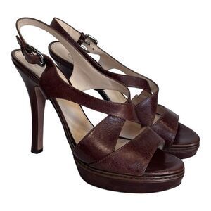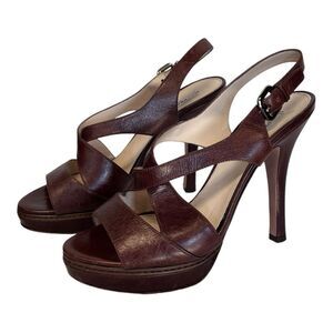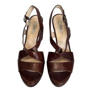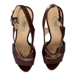 Prada | Brown Leather Strappy Platform High Heel Sandals 40 9