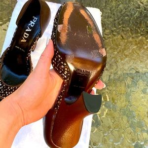 Prada Brown Tweed & Leather Peep Toe D'Orsay Heels