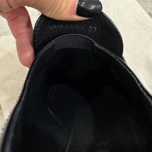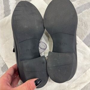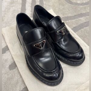 Elegant black loafers with signature Prada logo. Sleek design for versatile wear.