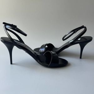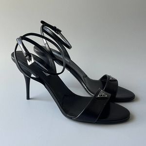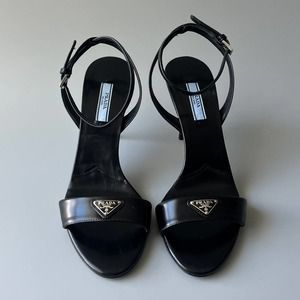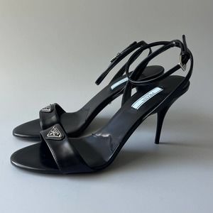Prada Brushed Leather Logo Heel Sandal