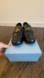 Prada Brushed Leather Women’s Glossy Black Loafers, size 38.5
