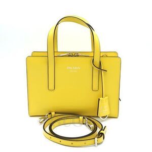 Contents: This is a product purchased at a domestic department store in August 2022. This is a 1995 re-edition handbag made of yellow brushed leather. It has a minimalist design with storage space divided around a central zipper pocket, and is a tote and cross-body bag with a detachable strap. Body - Natural wear other than scratches and minor stains Handle - Good except for wrinkles and minor stains Strap (yes/no) - Yes\/ Silver plate, minor stains and minor scratches etc. Good Interior - Good Edges - Good except for minor wear at the top and bottom corners
