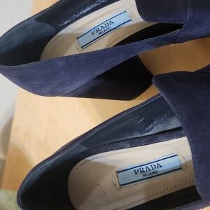 Prada Buckled Fringet Suede Leather Pumps Sz 38,5 Blue