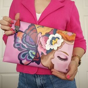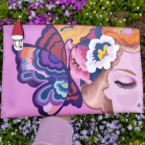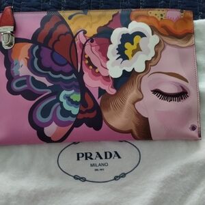 Prada Butterfly Print Saffiano Leather Clutch/Purse