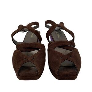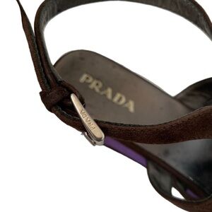 Prada Calzature Donna Ankle Strap Suede Leather Peep Toe Wedge Heel, Brown sz 38