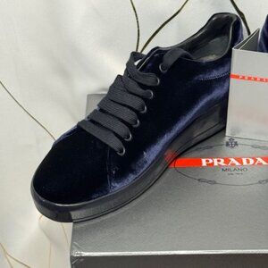 Prada Calzature Donna “Downtown” Trainers – Bleu Velvet – Size 40.5