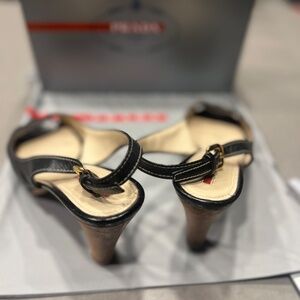 Prada Calzature Donna Platform Leather Sandals with wooden Heel US 8