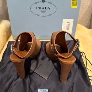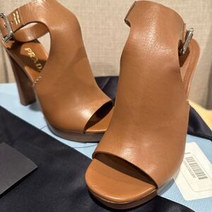 Prada Calzature Donna high heeled patent leather sandals size EU 35, tan NWT