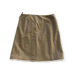 Prada Camel Color Wool Wrap skirt with Shearling Trim with toggle, Size 44 Ital