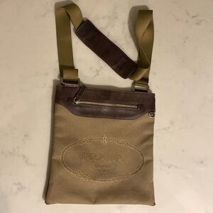 Prada Canapa Brown Jacquard leather messenger bag unisex