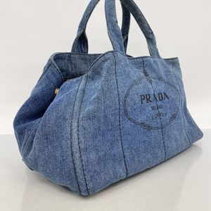 Prada Canapa Denim Tote Bag Blue Gold Hardware Pre-owned Women's