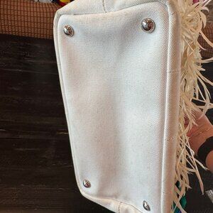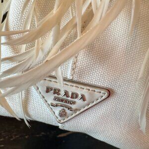 Prada Canapa Fringe with Plume White 2-Way Crossbody Bag