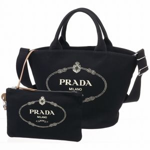 Prada Canvas Canapa with Tote Bag Black Fabric Pouch